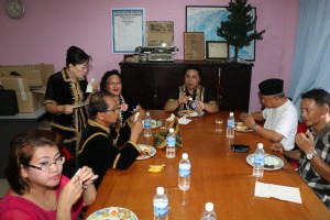VIPs, invited guests, organiser of the Harvest Festival Celebrations, members of the Kadazan Dusun Murut Community (KDM) and visually handicapped having a lunch break during the Harvest Festival Celebration which started at 9.00am and ended at 5.30pm at Taman Cahaya on 3rd May 2015.