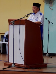 Taman Cahaya’s Supervisor giving a welcome speech to the visitors from Sandakan College of Nursing on 26/9/2015.