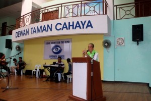 Society’s Sandakan Branch Vice-Chairman Mr Peter Chong welcoming and briefing visitors from Sandakan Buddhist Fellowship Society, staff of K2, teachers and students of SJKC Syn Hua, Sandakan during visit to Taman Cahaya on 25/10/2015.