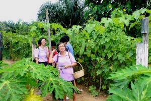 Visitors admiring vegetables grown by the blind trainees/inmates at Taman Cahaya’s Nursery/vegetable garden during visit by Sandakan Buddhist Fellowship Society, K2, teachers and students of SJKC Syn Hua, Sandakan on 25/10/2015.