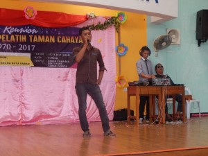 A visually impaired singer belting out a song during the Singing Talentine Contest held in conjunction with the statewide 3-Days Extrainees Reunion function on 17th December 2017.