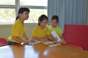 Young visitors ftom Pertubuhan Persaudaraan Agama Buddha Sandakan learning to read Braille imprinted papers during visit on 2nd March 2014 Tweet Pin It