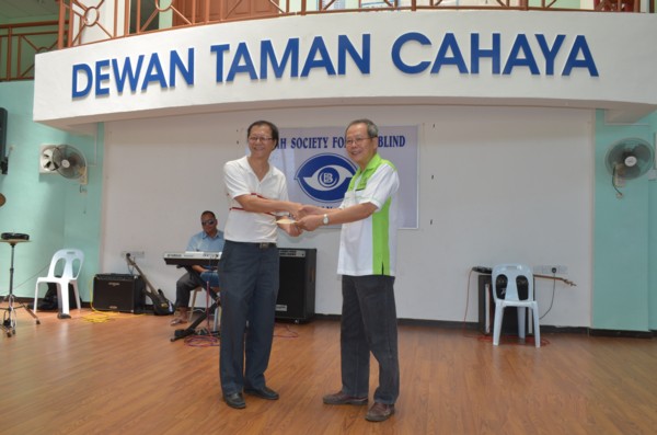 Presentation of donation from the Chairman of Pertubuhan Persaudaraan Agama Budhha Sandakan, Dr Ong on 2nd March 2014