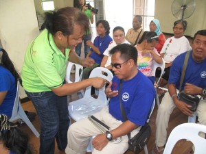 Presentation of emblem to blind by Sandakan AIDS Support Group Association during visit on 29th September 2012 Tweet Pin It