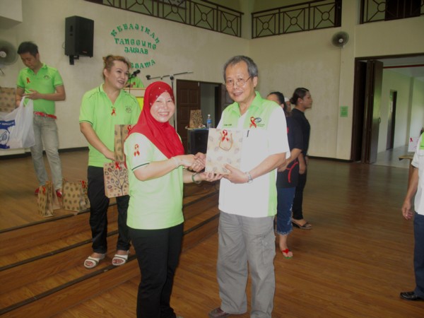 Presentation of appreciation token by Chairlady of Sandakan AIDS Support Group Association on 29th September 2012