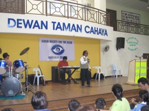 Blind musician John Ebin belting out his favourite songs to visitors of Buddhist Tzu Chi Foundation of Taiwan on 12th August 2012 Tweet Pin It