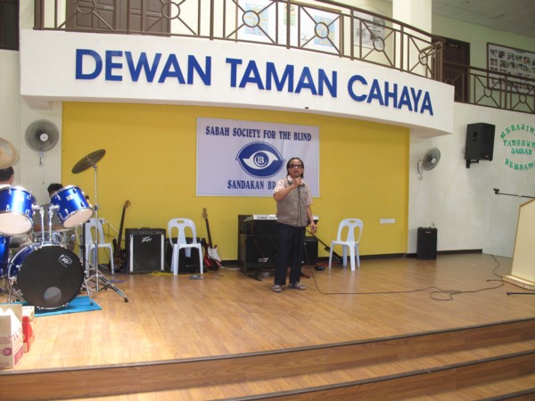 John Ebin, the blind musician, singing his favourite album songs to visitors from Swiss Inn Waterfront Hotel on 11th August 2012