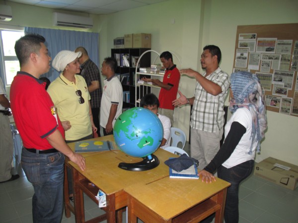 Explaining to visitors of Swiss Inn Waterfront Hotel on 11th August 2012 at the Braille Library Tweet Pin It