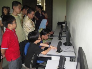 Members of Visitors from Machinery & Automobile Parts Traders Association Sandakan observing the use of computer by blind during their visit on 10th September 2011