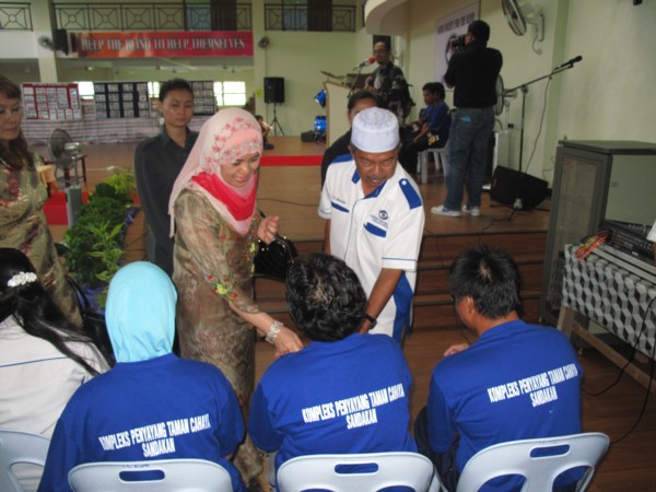 Introducing blind trainees to Datin Seri Panglima Toh Puan Hajjah, wife of Sabah TYT, during her visit on 3rd July 2011 Tweet Pin It