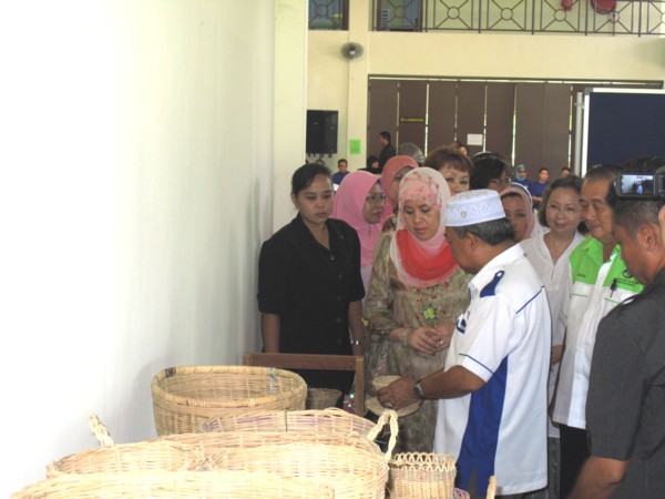 Datin Seri Panglima Toh Puan Hajjah, wife of Sabah TYT, touring the Handicrafts Training Room during her visit on 3rd July 2011 Tweet Pin It