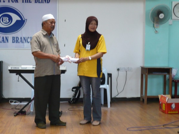 Presentation of gift to Taman Cahaya’s Supervisor by Smart Reading Club of Sabah State Library Sandakan on 12th April 2014