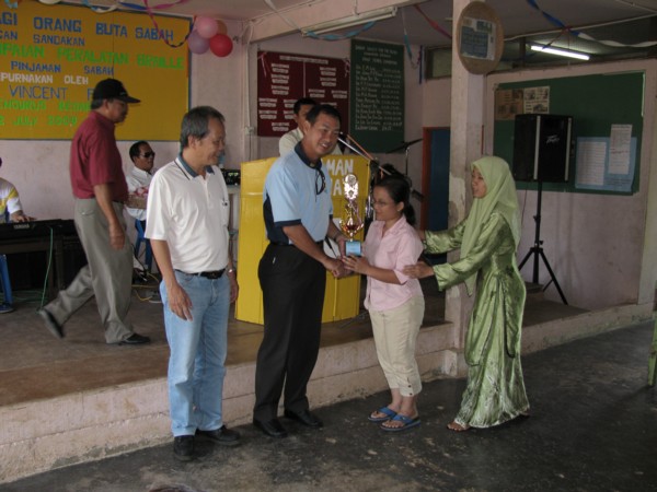 Presentation of trophy to blind trainee by Datuk Vincent Pung, General Manager of Sabah Credit Corporation Kota Kinabalu on 22nd July 2009 Tweet Pin It