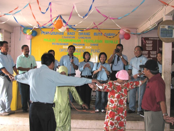 Visitors from Sabah Credit Corporation Kota Kinabalu joining in a Samazau Dance during visit on 22nd July 2009