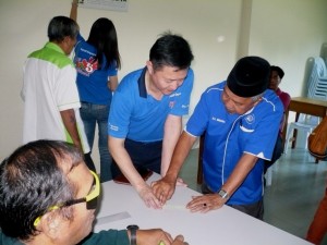 The Centre’s Supervisor demonstrating the braille reading technique during visit from Hong Leong Bank Berhad, Sandakan on 5th June 2014. Tweet Pin It