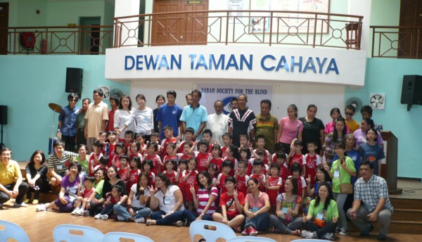 Group photo of visitors from kindergarten school of Sandakan Baptist Church and blind trainees on 10th June 2014. Tweet Pin It