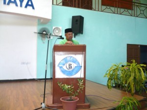 The Taman Cahaya’s Supervisor Hj Ibrahim welcomed the blind guests during the Hari Raya Adilfitri Celebration Function on 16th August 2014.
