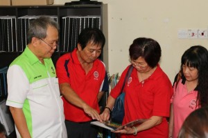 The President Mdm Hee and members of Senior Citizens Association Sandakan studying braille formated stories book for the blind during their visit on 24th August 2014. Tweet Pin It