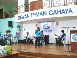 Welcome song by blind trainee to visitors of Zhang Clan Association Sandakan on 7th September 2014.