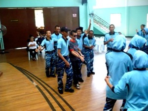 Sandakan camp’s National Service trainees mixing with the blind trainees/inmates during their visit on 20th September 2014.