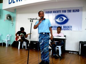 A National Service trainee from Sandakan camp entertaining the blind trainees/inmates with his song on 20th September 2014. Tweet Pin It