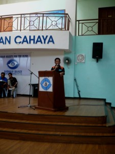 Representative from Sandakan Basel Church giving a speech during during to Taman Cahaya on 29th November 2014. Tweet Pin It