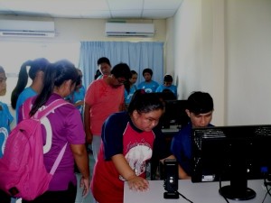 A blind trainee demonstrating his computer skills to members of Sandakan Basel Church during their visit to Taman Cahaya on 29th November 2014. Tweet Pin It