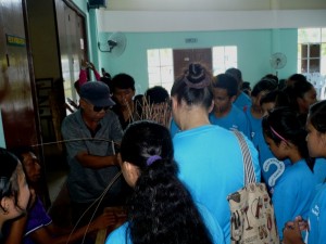 Members of Sandakan Basel Church observing rattan weaving skills during their visit to Taman Cahaya on 29th November 2014. Tweet Pin It