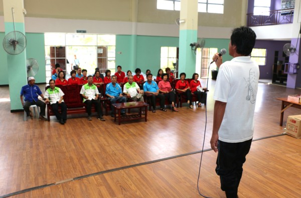 A blind trainee giving a welcoming song to visitors from Hokien Association Sandakan during their visit on 30th November 2014.
