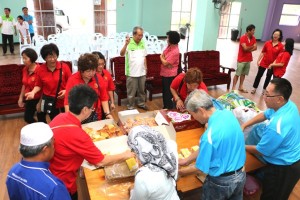 Members of Hokien Association Sandakan distributing cakes and drinks to blind trainees and inmates at Taman Cahaya during their visit on 30th November 2014.