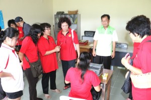 A blind trainee demonstrating Braille typing to members of Hokien Association Sandakan during their visit on 30th November 2014.