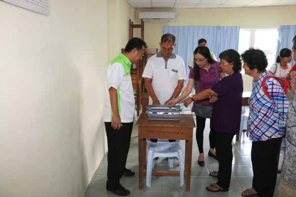 Members of Persatuan Penganut Agama Buddha Tian Xuan trying Braille typing during their visit to Taman Cahaya on 8th March 2015. Tweet Pin It
