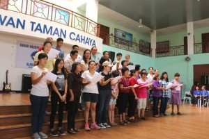 Members of the Sandakan Parish of Basel Christian Church of Malaysia giving their musical pieces to the blind trainees and inmates during their visit to Taman Cahaya on 18th April 2015.