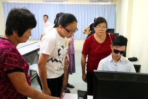 Members of Basel Christian Church of Malaysia (Sandakan Parish) observing a demo by blind on computer typing skills during their visit to Taman Cahaya on 18th April 2015. Tweet Pin It