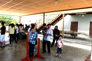 Members of Basel Christian Church of Malaysia (Sandakan Parish) trying a hand at dart meant for the blinds during their visit to Taman Cahaya on 18th April 2015.
