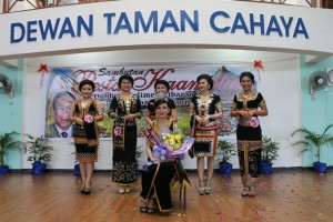 The outgoing Unduk Ngadau reigning Queen together with five of the finalists during the Harvest Festival Celebration held on 3rd May 2015 at Taman Cahaya.
