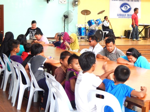 Blind inmates and their children waited eagerly for food/refreshment to be served to them during visit by Joint delegates from the Sandakan Indian Association, Sabah MIC Youth, MIC Libaran and Manoharan Junior Tennis Academy on 13th June 2015. Tweet Pin It