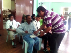 Visitors from Institut Latihan Perindustrian Sandakan distributing food parcels to the blind inmates during their visit on 6th June 2015. Tweet Pin It