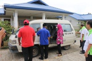 Sime Darby Foundation’s CEO, CSR Projects Senior Executive and Executive namely Mdm Hjh Yatela, Mr Mohamad Azmi and Mr Muhammad Zahin respectively doing an inspection of the centre’s existing old vans before the official handover ceremony of a new van donated by the Foundation on 6th August 2015 at Taman Cahaya.