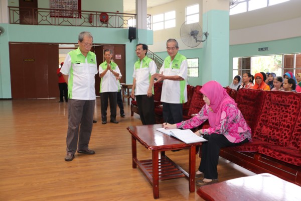 Entering visitors’ logbook by Sime Darby Foundation’s CEO, Mdm Hjh Yatela, during visit to Taman Cahaya on 6th August 2015 to officially hand over donation of a new van. Tweet Pin It