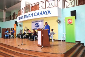 MC welcoming Sime Darby Foundation’s CEO, CSR Projects Senior Executive and Executive namely Mdm Hjh Yatela, Mr Mohamed Azmi and Mr Muhammad Zahin respectively to Taman Cahaya on 6th August 2015 to officially hand over donation of a new van.