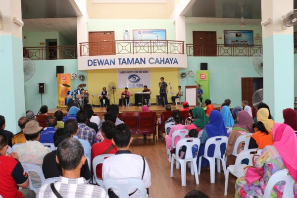A blind singer performing during visit by Sime Darby Foundation’s CEO, CSR Projects Senior Executive and Executive namely Mdm Hjh Yatela, Mr Mohamed Azmi and Mr Muhammad Zahin respectively on 6th August 2015 to officially hand over donation of a new van.