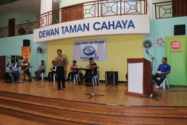 A blind singer performing during visit by Sime Darby Foundation’s CEO, CSR Projects Senior Executive and Executive namely Mdm Hjh Yatela, Mr Mohamed Azmi and Mr Muhammad Zahin respectively on 6th August 2015 to officially hand over donation of a new van.