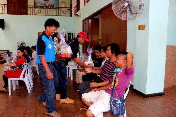 Distribution of donations to the blind inmates/trainees by visitors from Asia Oil Palm Sdn Bhd and Asia Palm Oil Mill on 31st August 2015.