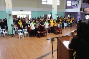 Visitors from Malayan Banking Berhad Sandakan standup as a gesture of appreciation for the welcome received during their visit to Taman Cahaya on 5th September 2015. Tweet Pin It