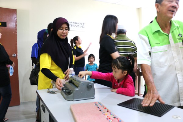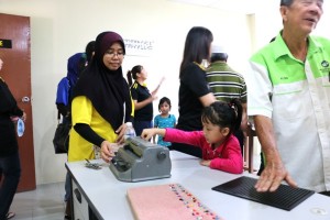 Young visitor was equally intrigued by the Braille Typewriter during visit to Taman Cahaya on 5th September 2015. Tweet Pin It