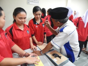 Visitors from Sandakan College of Nursing and Zhang Clan Association of Sandakan visiting the Braille Training Room during visit to Taman Cahaya on 26/9/2015. Tweet Pin It