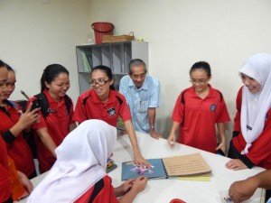 Visitors from Sandakan College of Nursing and Zhang Clan Association of Sandakan visiting the Braille Training Room during visit to Taman Cahaya on 26/9/2015.