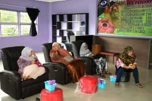 Visitors at Taman Cahaya’s Massage Centre during visit from SMK Tongod on 25/10/2015.