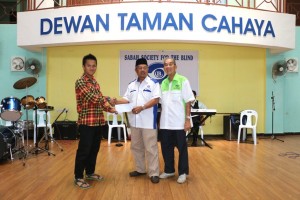 Presentation of cash donation from teachers/students of SMK Tongod during visit to Taman Cahaya on 25/10/2015.